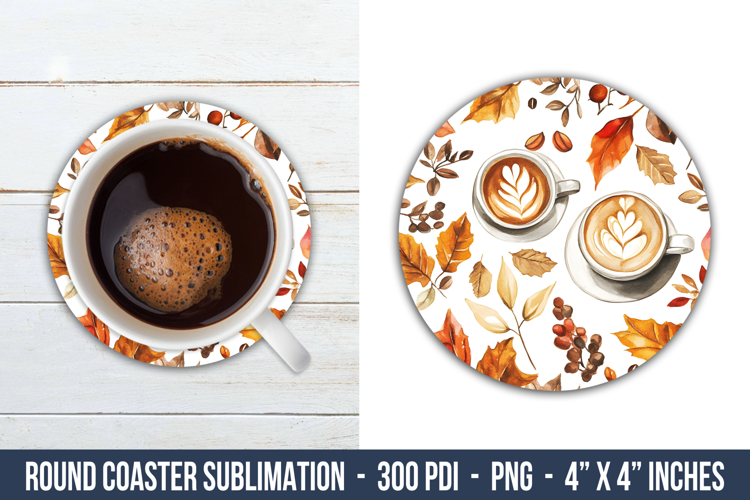 Watercolor Fall Coffee Round Coaster | Round Coaster Design example image 1