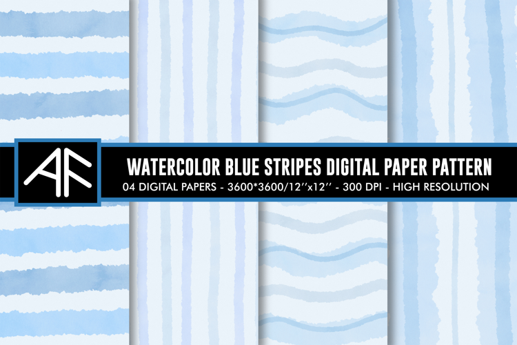 Blue Stripes Digital Paper Pattern,Blue Stripes Pattern, Blue Stripes Background, Watercolor Stripe Digital Paper,