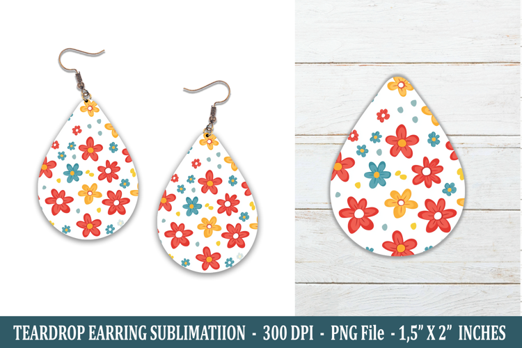 Cute Flower Teardrop Earring | Earring Sublimation example image 1