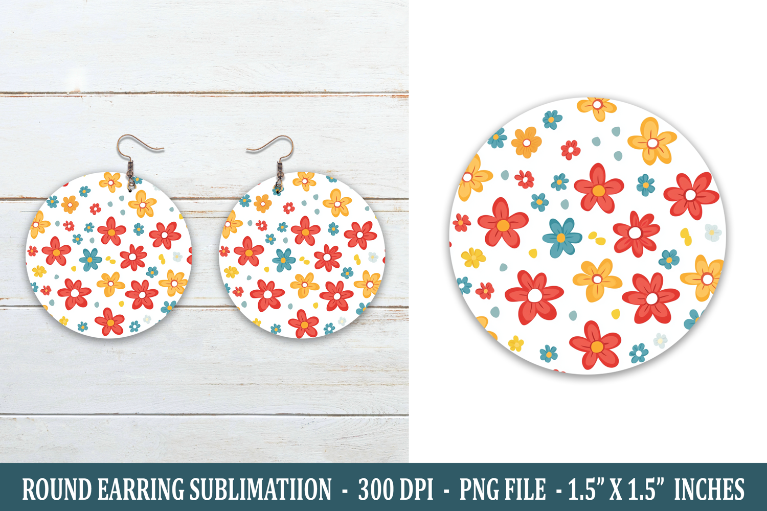Cute Flower Round Earring | Earring Sublimation example image 1