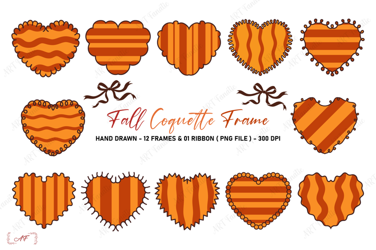 Fall Coquette Frame Bundle PNG. These Fall Heart Shape Coquette Frame is hand drawn with love and used fall theme colors.