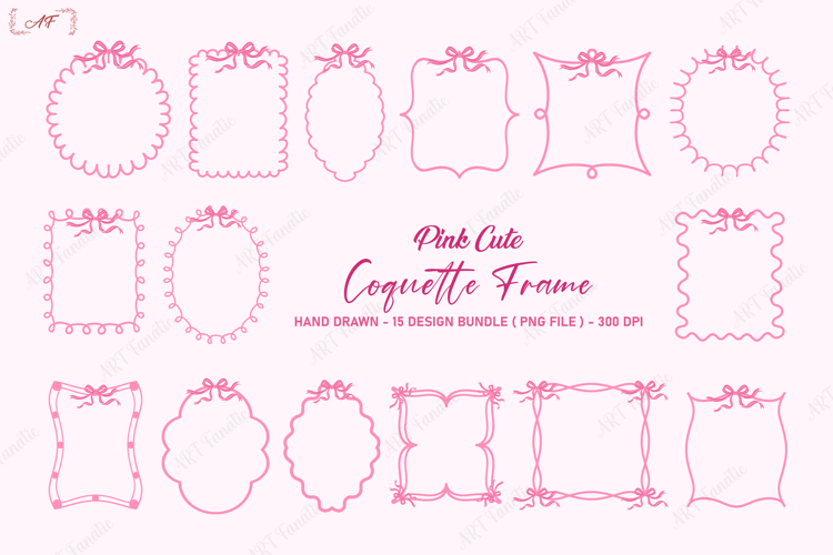 Pink Cute Coquette Frame Bundle PNG. These Cute Coquette Frame is hand drawn with love and used Pink GIrly theme colors.