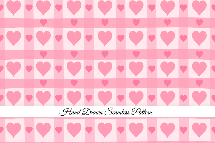 This is a cute seamless heart pattern featuring soft pink hearts arranged in a checkered grid on a pastel background, creating a sweet and playful design perfect for nursery decor, wrapping paper, stationery, and romantic craft projects.