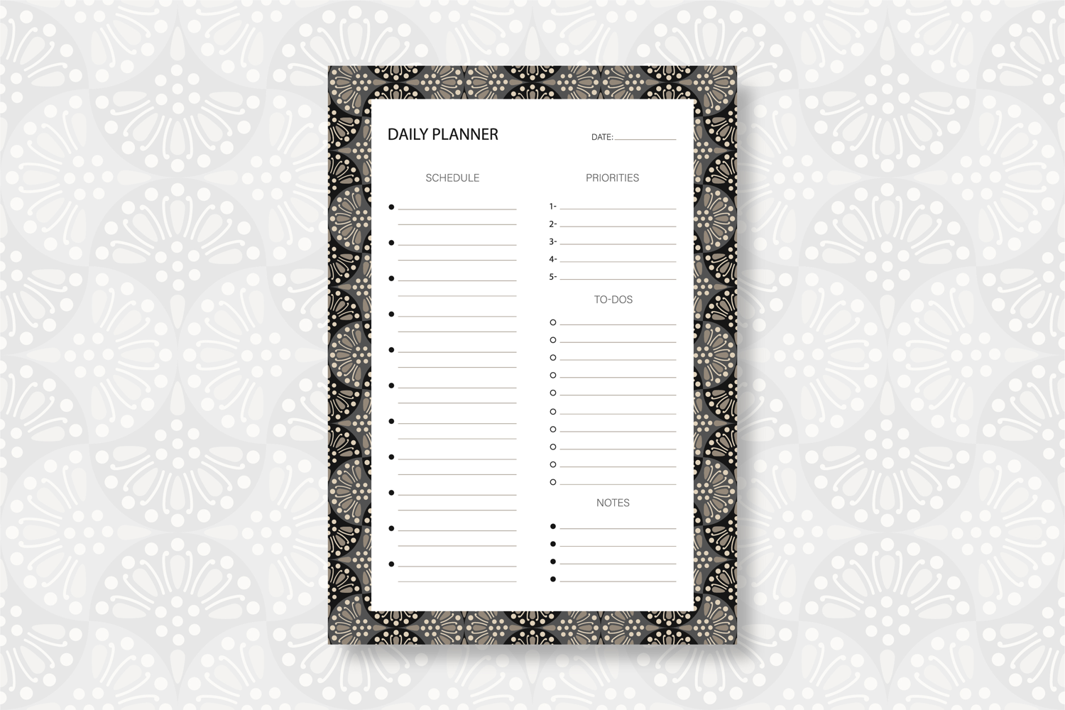 Daily Planner Template with Ogee Pattern