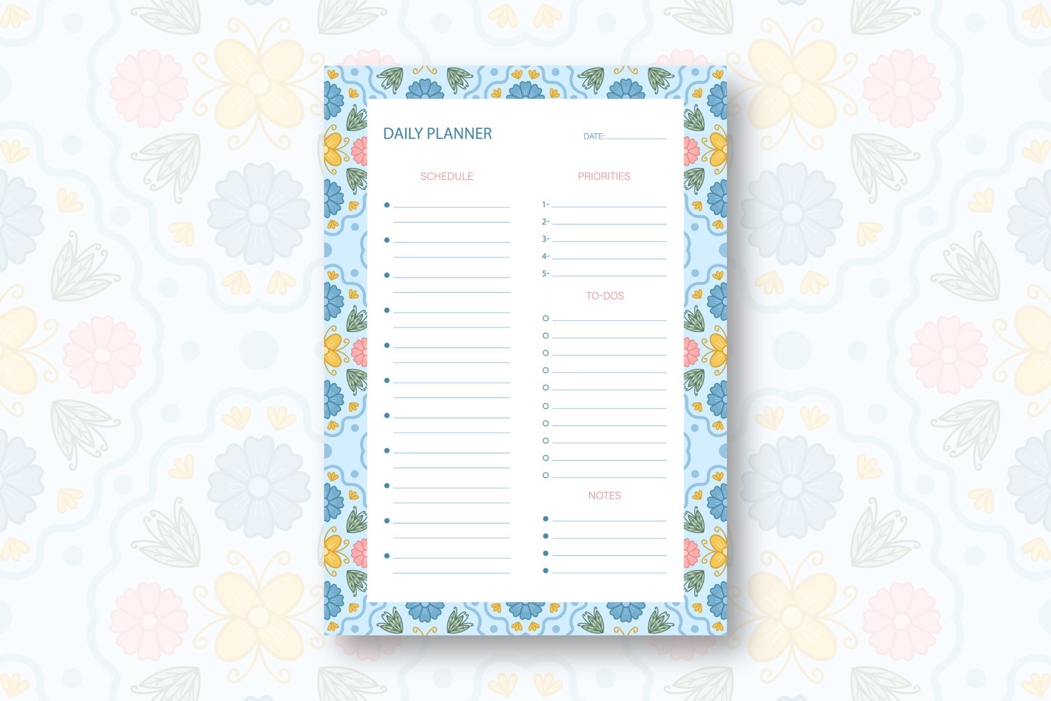 Flower Daily Planner Template | Daily Planner