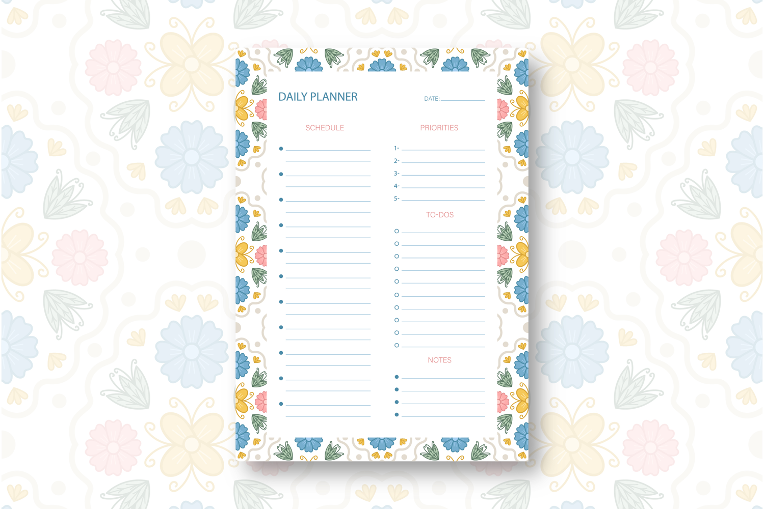 Folk Flower Daily Planner Template | Daily Planner example image 1