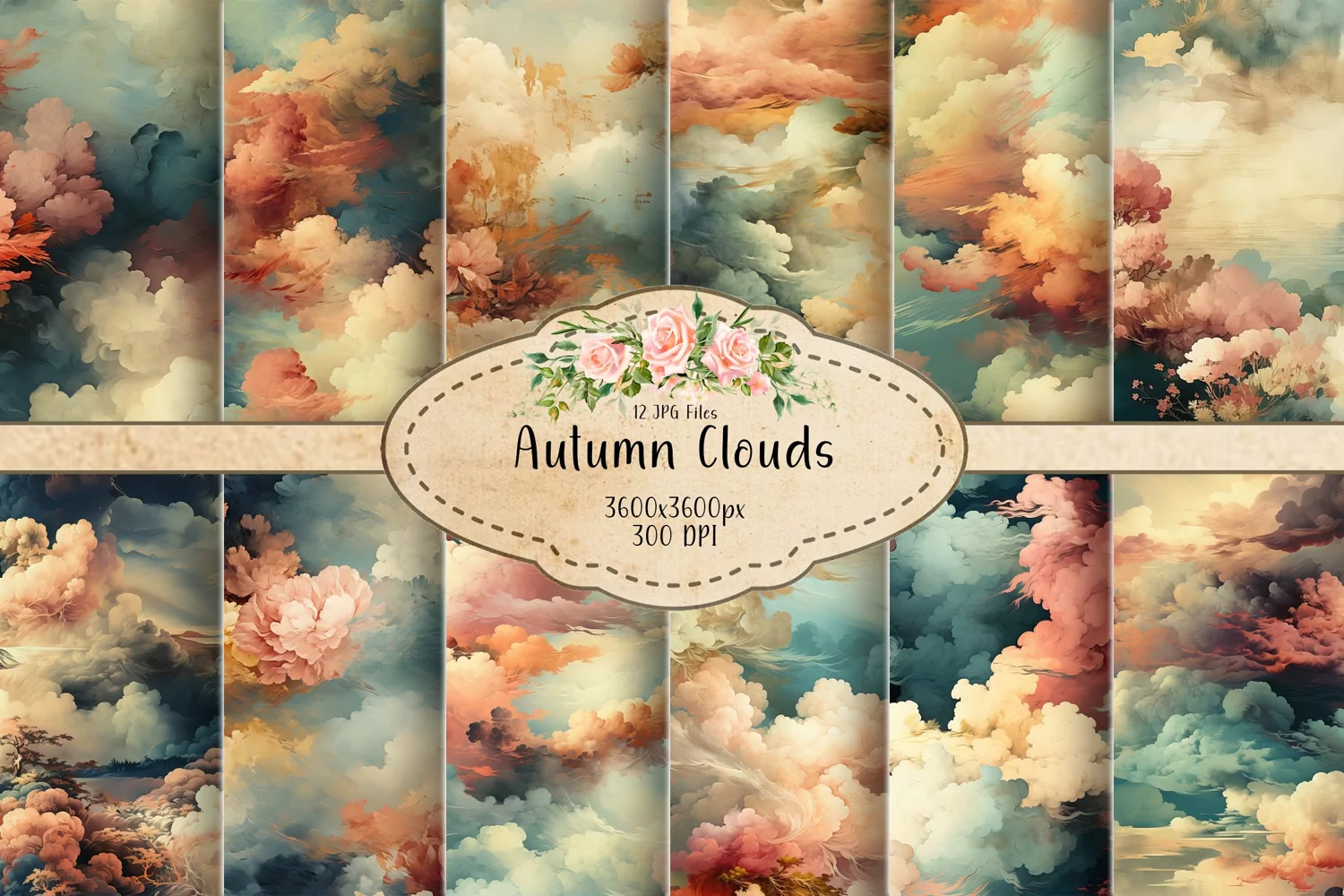 Vintage Patterns Fall Colors Autumn Sky Seamless Clouds Fall Sky Autumn Clouds Weathered Sky Tattered Sky Vintage Cloud Weathered Patterns