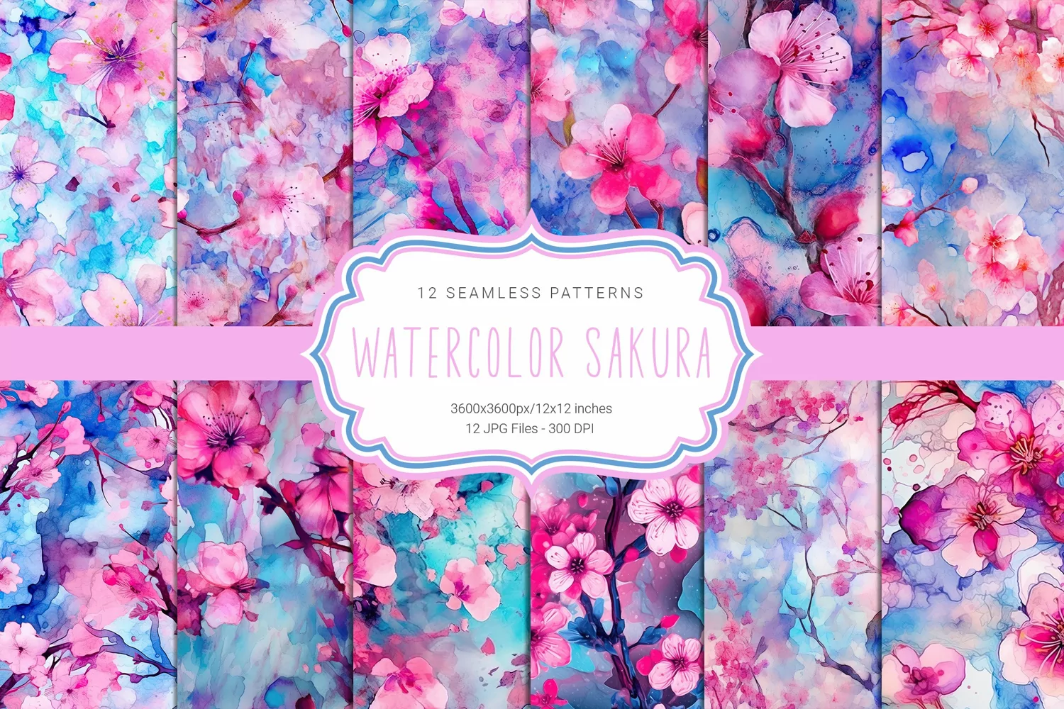 Watercolor Cherry Blossom Seamless Patterns