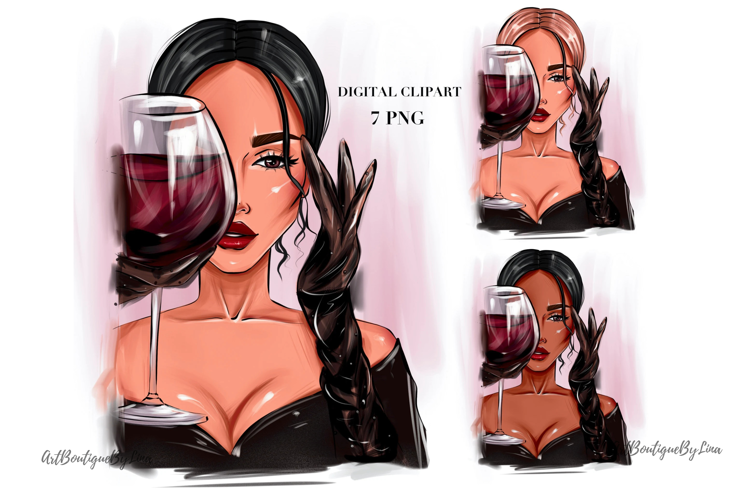 Similar Design Products to Fashion clipart, Women birthday clipart, Wine Girl PNG