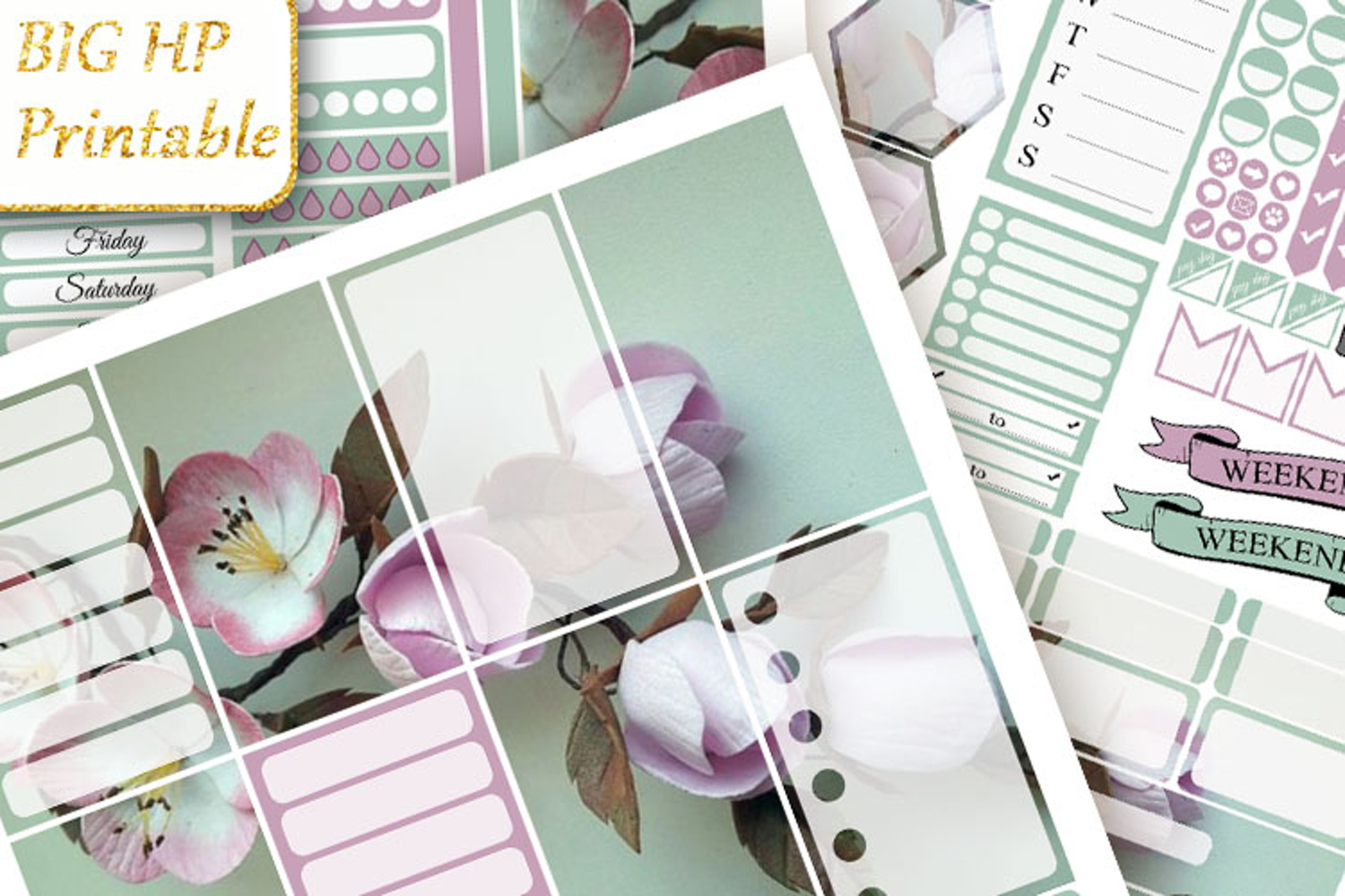 This printable weekly planner stickers kit is created for Big Planner.