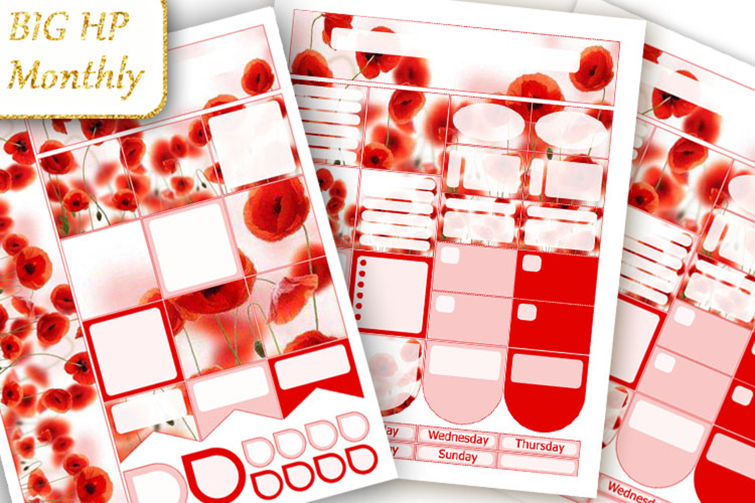 Big Happy Planner Stickers Monthly Poppy floral art example image 1