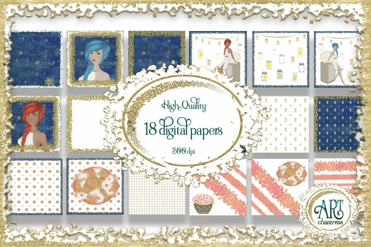 Beautiful Summer nights and Fashion Girls floral DIGITAL PAPERS !