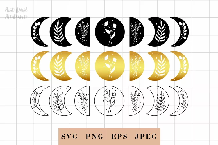 Similar Design Products to Moon phases svg, Celestial svg File, Floral moon svg