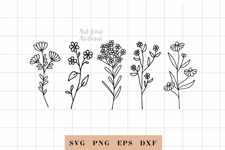 Similar Design Products to Wildflower svg, floral svg, leaf and stem cut files