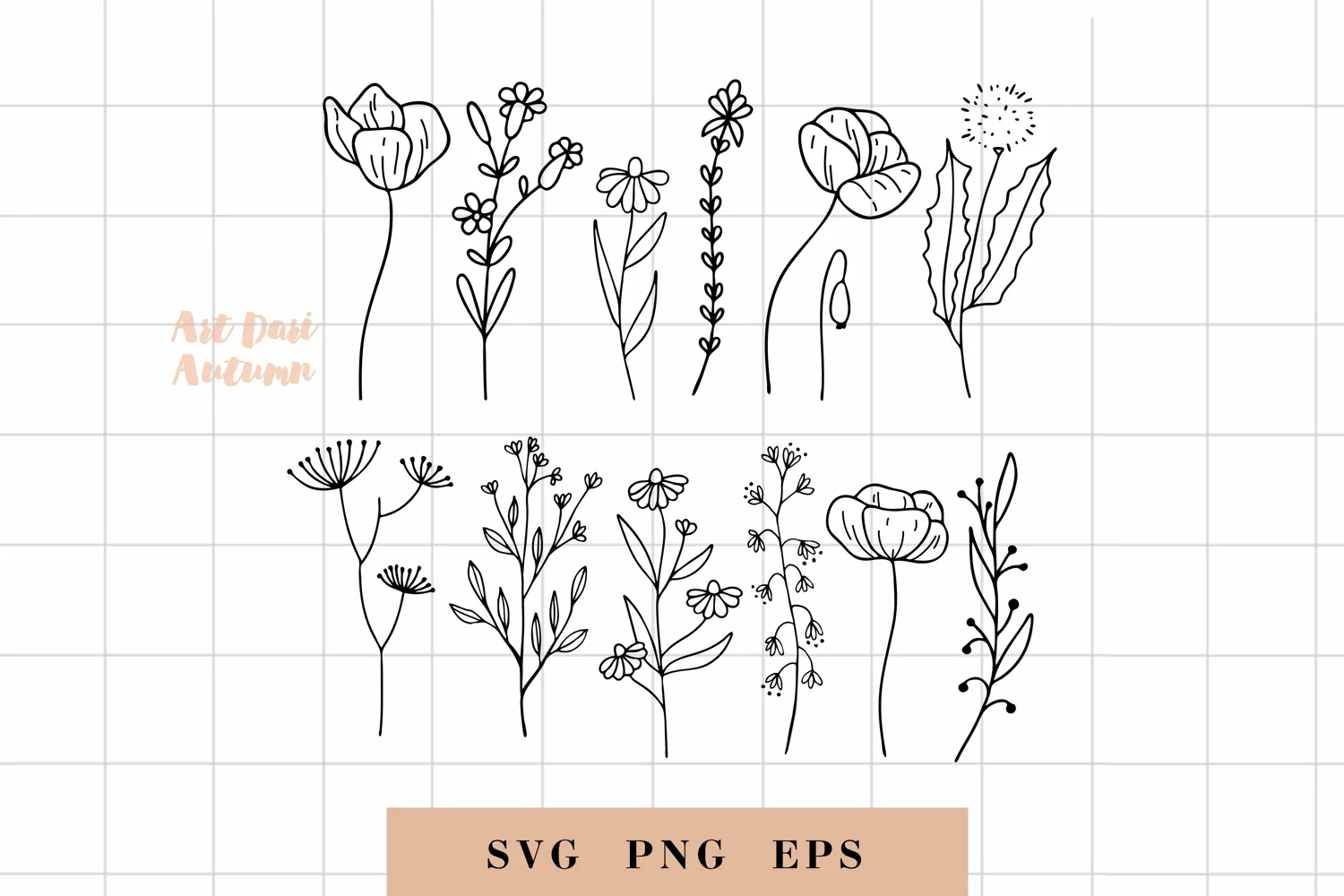 Similar Design Products to Wildflower svg, floral svg, leaf and stem cut files
