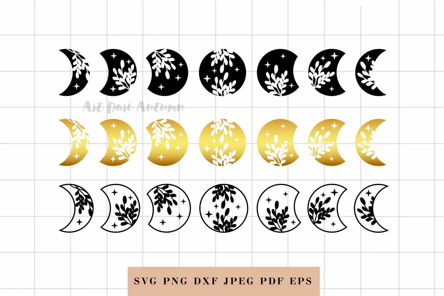 Similar Design Products to Moon phases svg, Celestial svg File, Floral moon svg