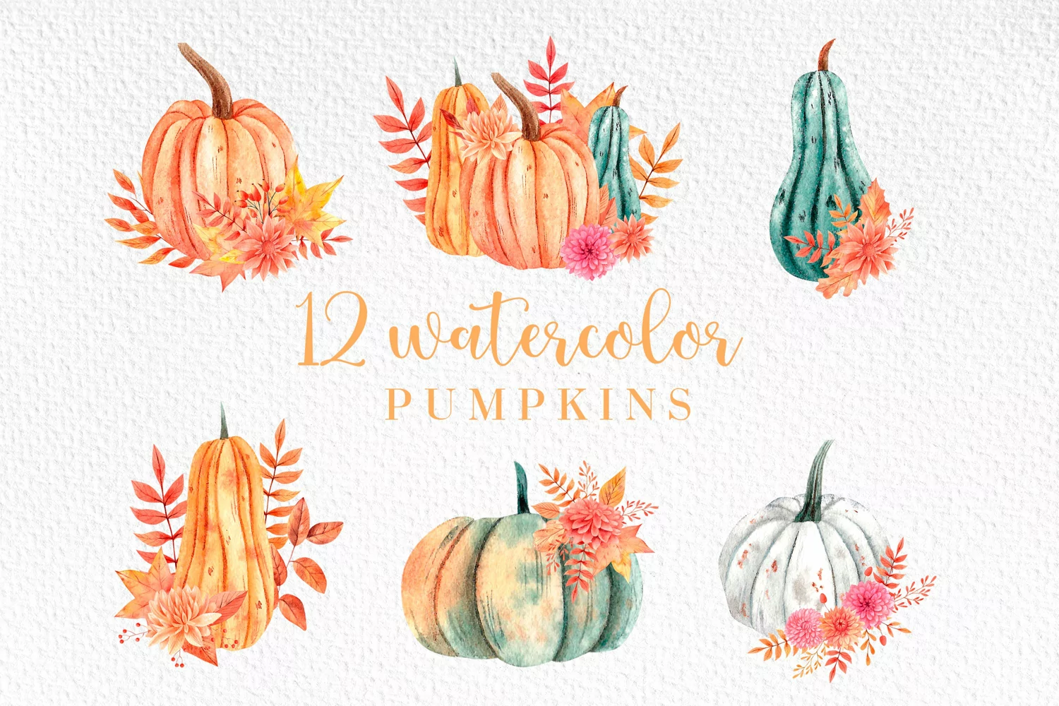 Watercolor Pumpkin Clipart, Fall png pumpkins, Thanksgiving example image 1
