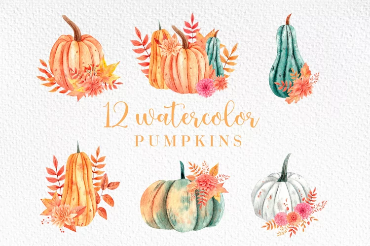 Similar Design Products to Watercolor Pumpkin Clipart, Fall png pumpkins, Thanksgiving