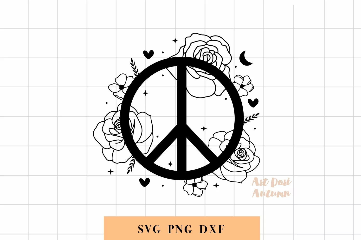 Peace sign with flowers and stars| Svg, Dxf and Png files