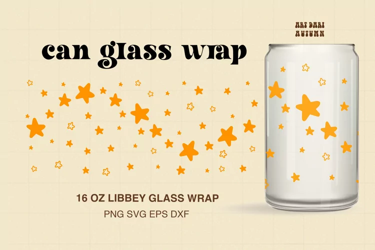 Meet my new product Can Glass Wrap with Retro Stars! This wrap template is perfect for the Libbey Glass 16 Oz.