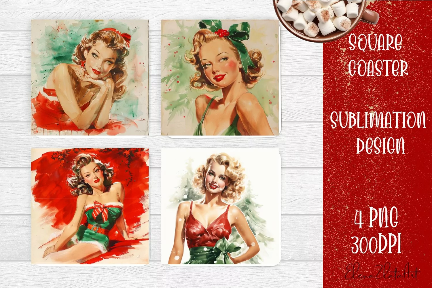 Pin Up Girl Christmas Coaster Coaster Designs Coaster Sublimation Designs Coaster Sublimation Coasters Square Christmas Cocktail Square Slides Square Mug Coaster Png Pin Up Girl Square Coaster Vintage Christms