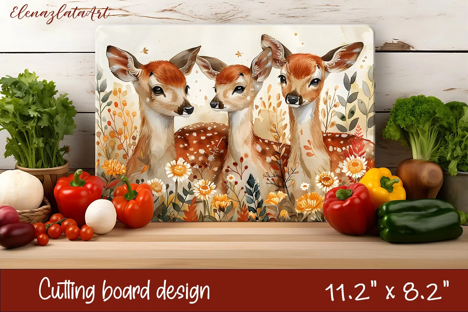 Animal Baby Animal Cute Deer Autumn Sublimation Flowers Sublimation Flowers Autumn Cutting Board Designs Cutting Board Sublimation Cutting Board Png Deer Cutting Board