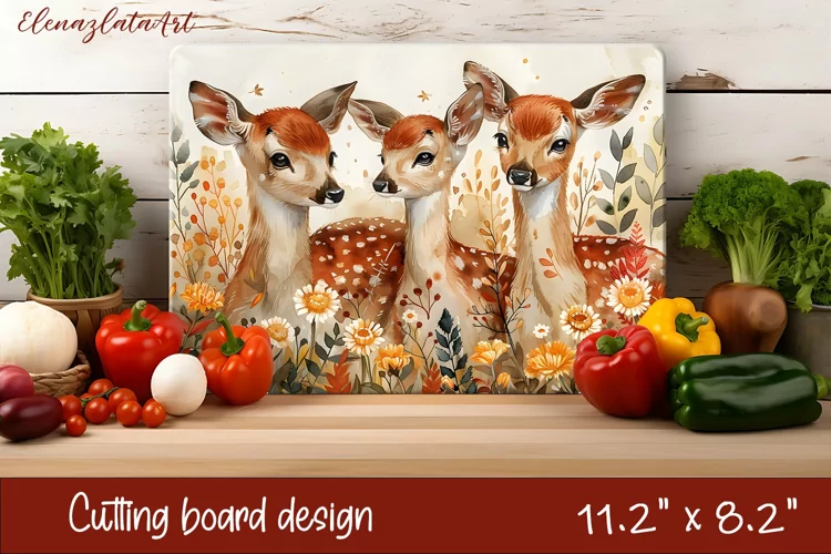 Cute deer Cutting Board Sublimation Design | flowers autumn