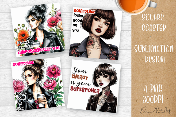 Square coaster Sublimation, GIRL and Motivational quotes example image 1