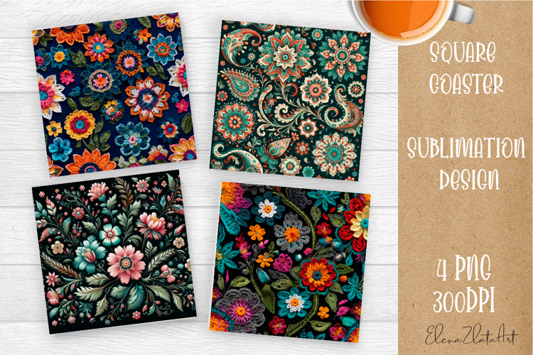 Folk flowers tile Coaster Design, Summer Coaster