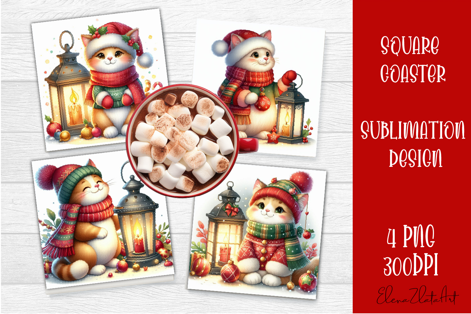 Christmas Cat Pot Holder Mug Coaster Coaster Designs Coaster Sublimation Designs Coaster Sublimation Coasters Square Cat Square Coaster Funny Cat Coaster Sublimation Cat Lover Coasters