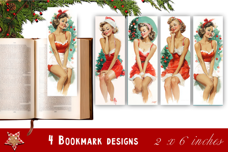 Pin up christmas girl bookmark printable | Retro woman book example image 1