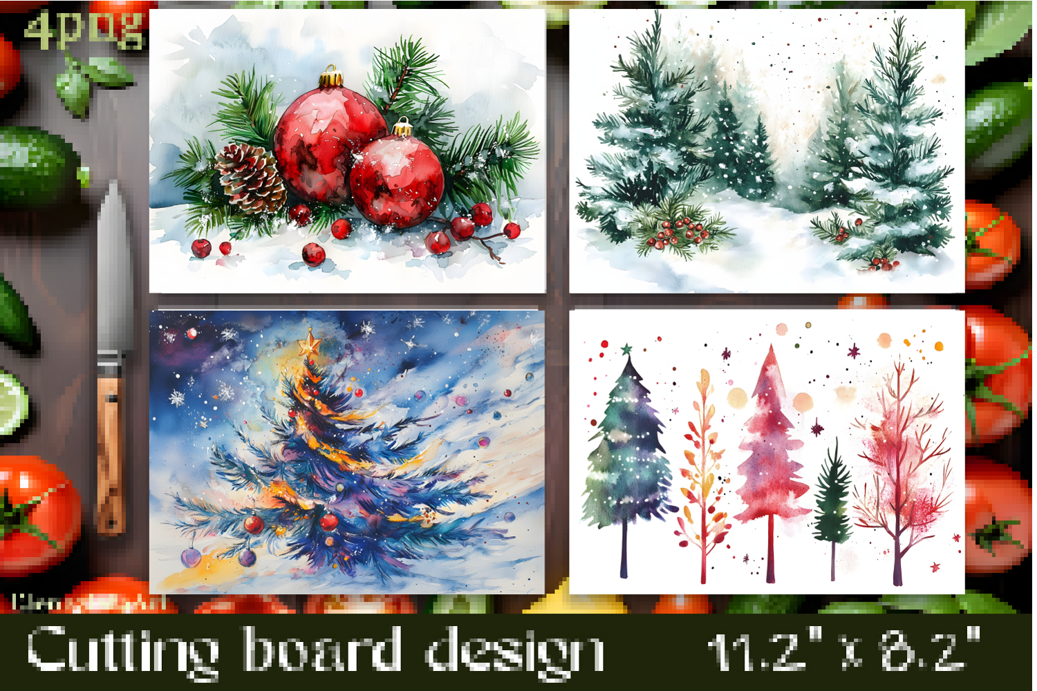 Vibrant christmas cutting board PNG, sublimation