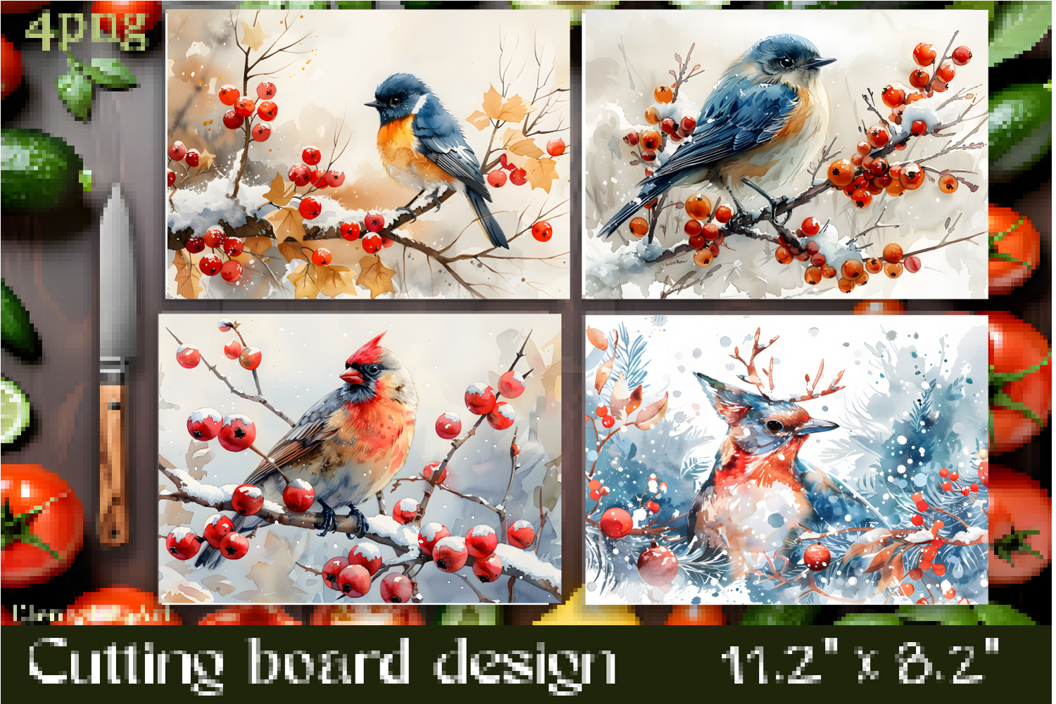 Similar Design Products to Vintage winter forest bird Cutting Board PNG Design