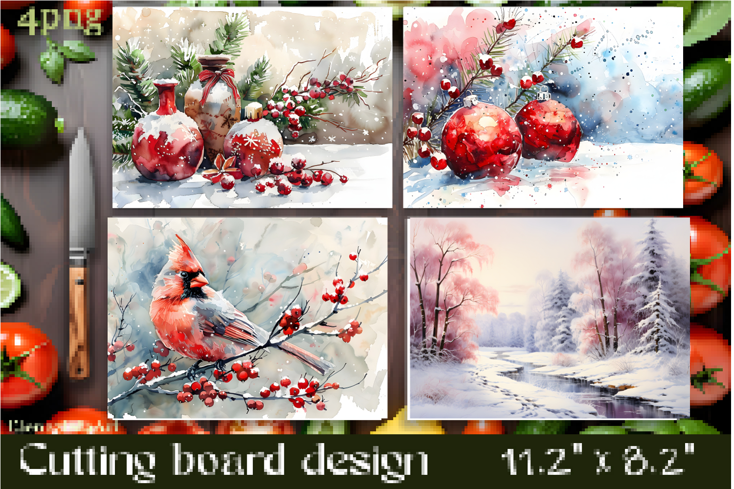 Vibrant christmas cutting board PNG, sublimation