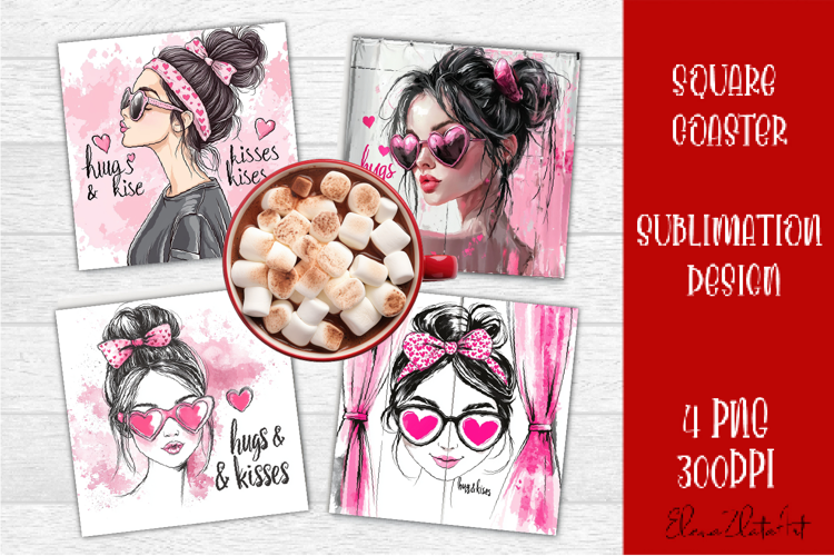Cute Girl Mug Coaster Funny Girl Coaster Designs Coaster Sublimation Designs Coaster Sublimation Heart Coaster Coasters Square Cute Girl Valentines Coaster Design Valentines Coaster Design