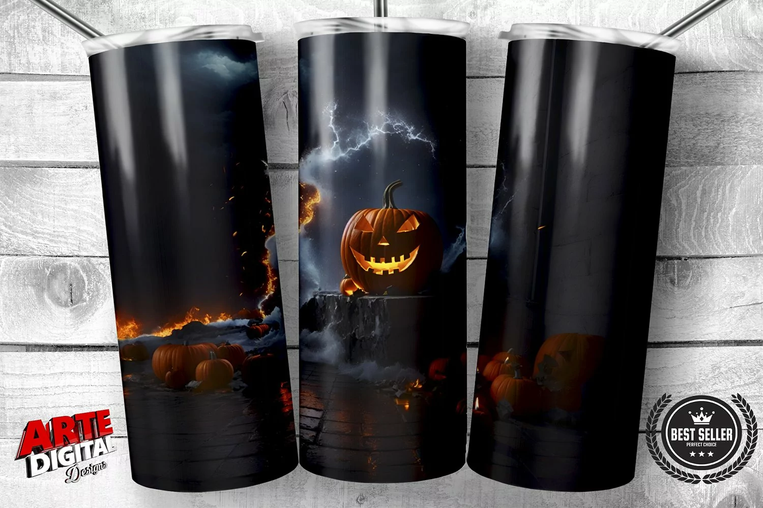 3D Halloween Tumbler Wrap Design Sublimation PNG | pumpkin tumbler wrap