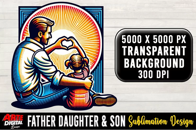 T-shirt Canvas Illustrations Printing Mugs Sublimation Print On Demand Sublimation Design Father Daughter And Son Sublimation Father Daughter And Son