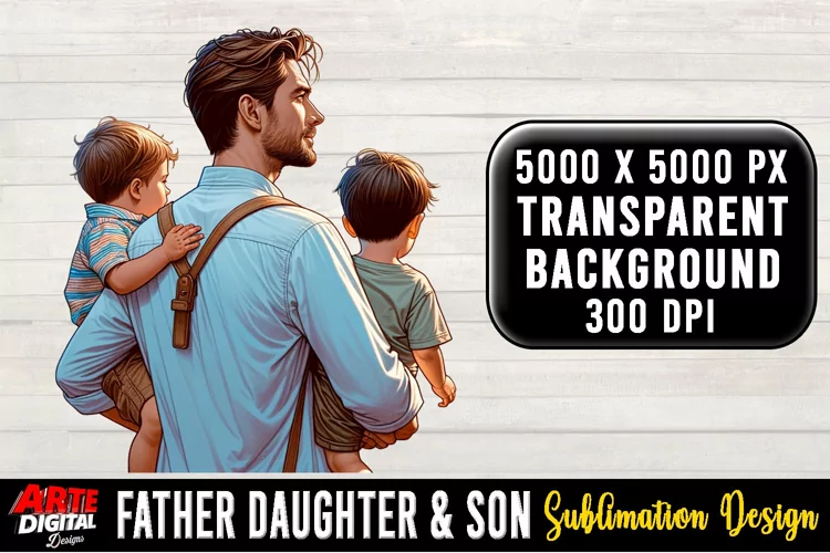 👕Make your creations shine with the warmth of family and download our Father Daughter And Son Sublimation clipart today.