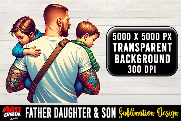 T-shirt Canvas Illustrations Printing Mugs Sublimation Print On Demand Sublimation Design Father Daughter And Son Sublimation Father Daughter And Son