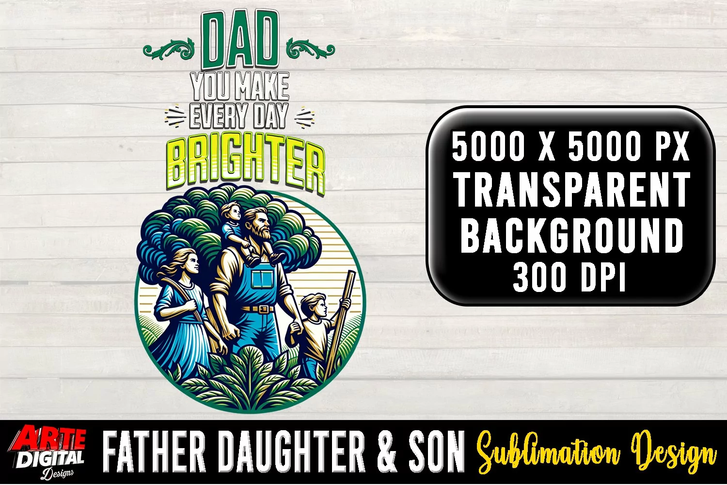 T-shirt Canvas Illustrations Printing Mugs Sublimation Print On Demand Sublimation Design Father Daughter And Son Sublimation Father Daughter And Son