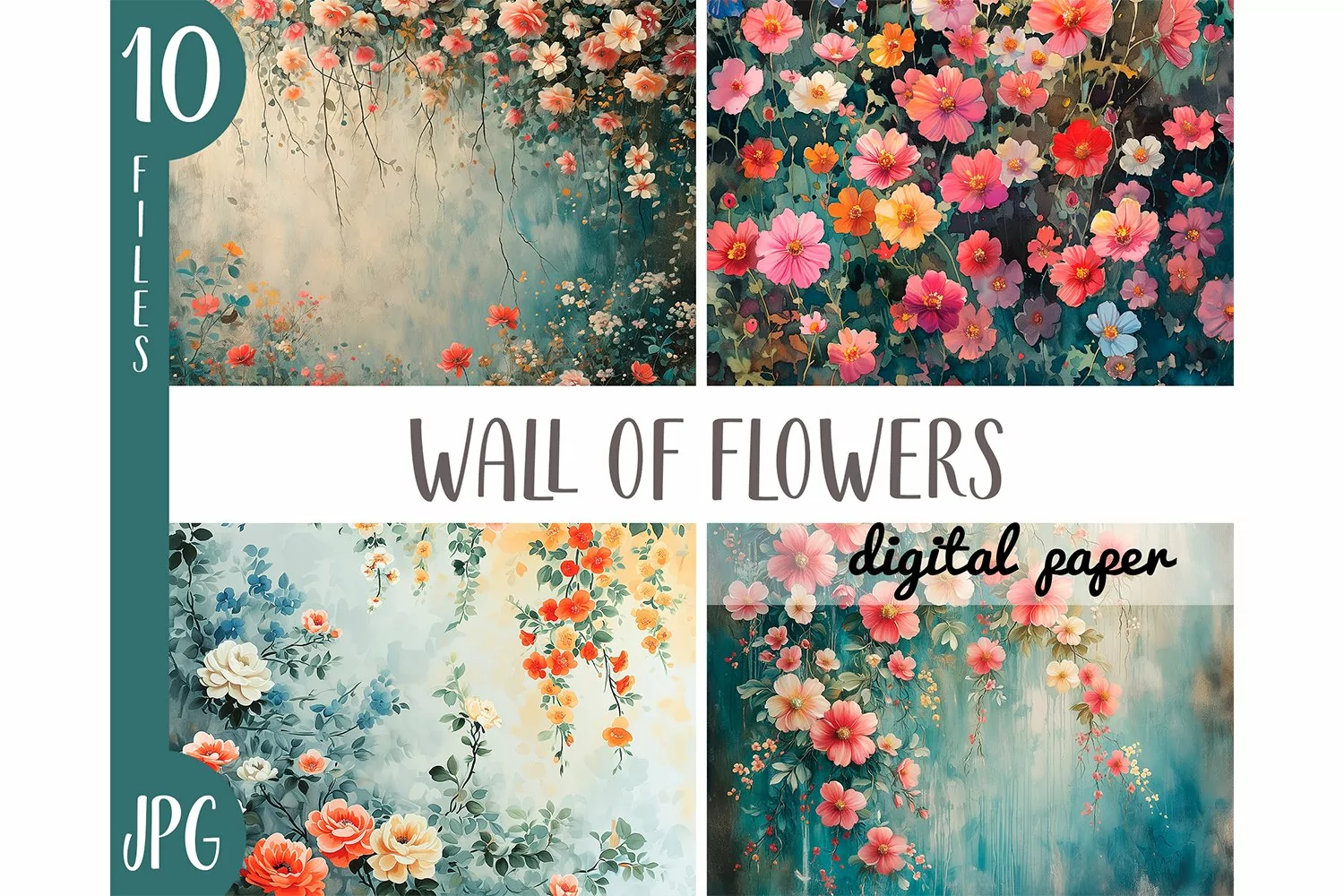 The set of high quality Watercolor wall of flowers clipart includes 10 JPG elements.