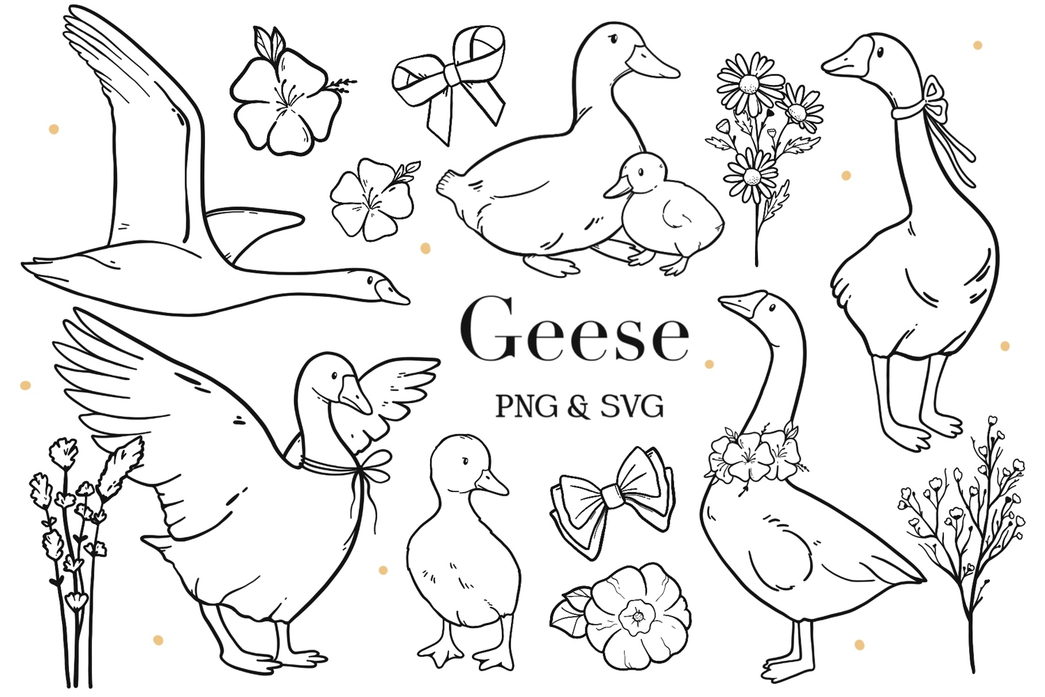 Goose Silhouette Vector Duck Goose Png Cottagecore Clip Art Silly Goose Clipart Doodles Line Art Geese Clipart Svg Momma Goose Svg Outline Geese Svg Flower Goose Graphic