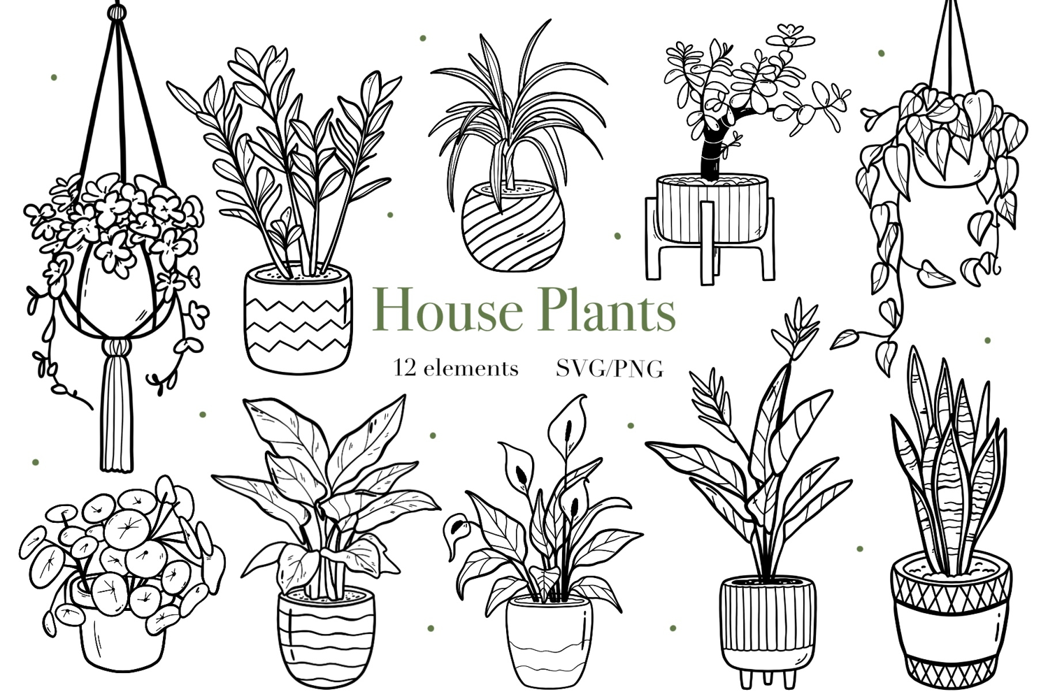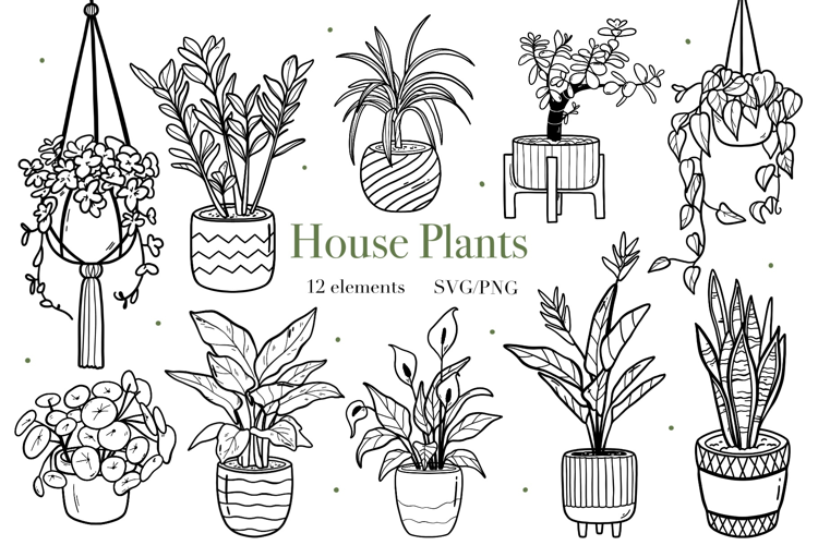 House Plants Line Art, Potted and Hanging Botanical Clipart