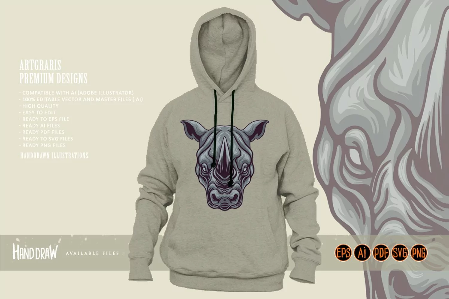 Cartoon Rhino Head Mascot Rhinoceros Mean example image 1