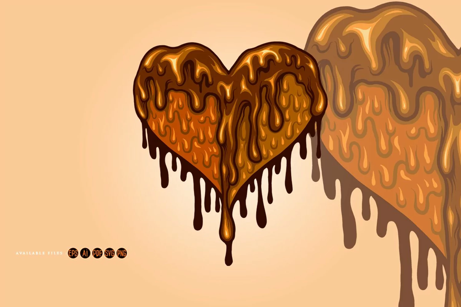 Vector illustration Heart love dripping chocolate svg suitable for various purposes, such as Illustration on Merchandise T-shirts, Tote Bags, stickers, banners or Decorations, greeting, Postcards, flyers, posters, and other design products.