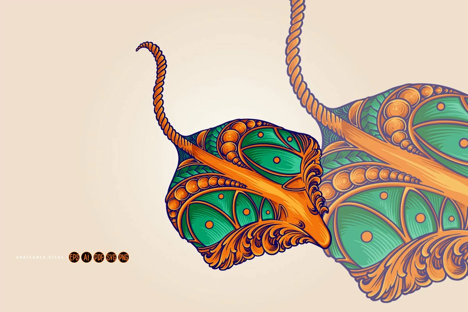 Vector illustration Classic stingray fish ornament svg suitable for various purposes, such as Illustration on Merchandise T-shirts, Tote Bags, stickers, banners or Decorations, greeting, Postcards, flyers, posters, and other design products.