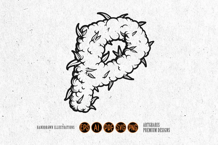Vector illustration Striking unique P lettering cannabis smoke silhouette. Suitable for various purposes, such as Illustration on Merchandise T-shirts, Tote Bags, stickers, banners or Decorations, greeting, Postcards, flyers, posters, and other design products.