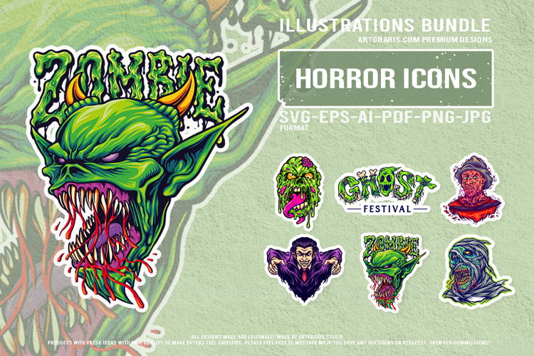 Horror Skull Vampire Zombie Ghost Mummy Monster Festival Creepy Goblin
