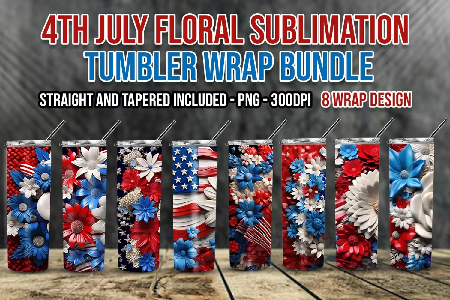 4th of July 3D Floral Sublimation Wrap Bundle example image 1