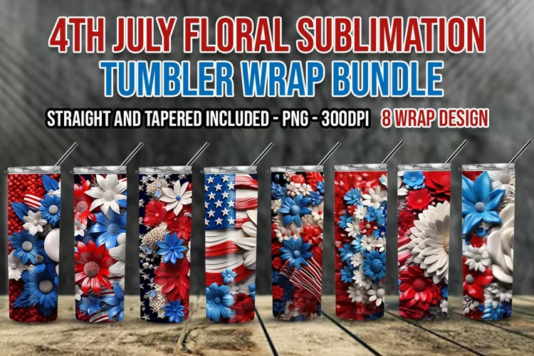 4th of july 3D Floral Sublimation Wrap Design | USA 4th July Tumbler Wrap PNG Bundle | 3D Tumbler Wrap PNG | 3D Floral Tumbler Wrap PNG | Full Wrap Design | 20oz Skinny Sublimation Tumbler Wraps (AI GENERATED)